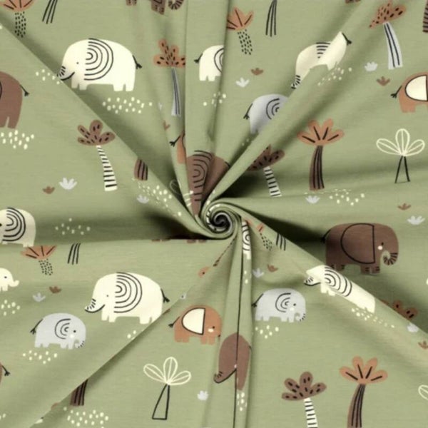Baumwolljersey Elefanten Safari Altsalbei
